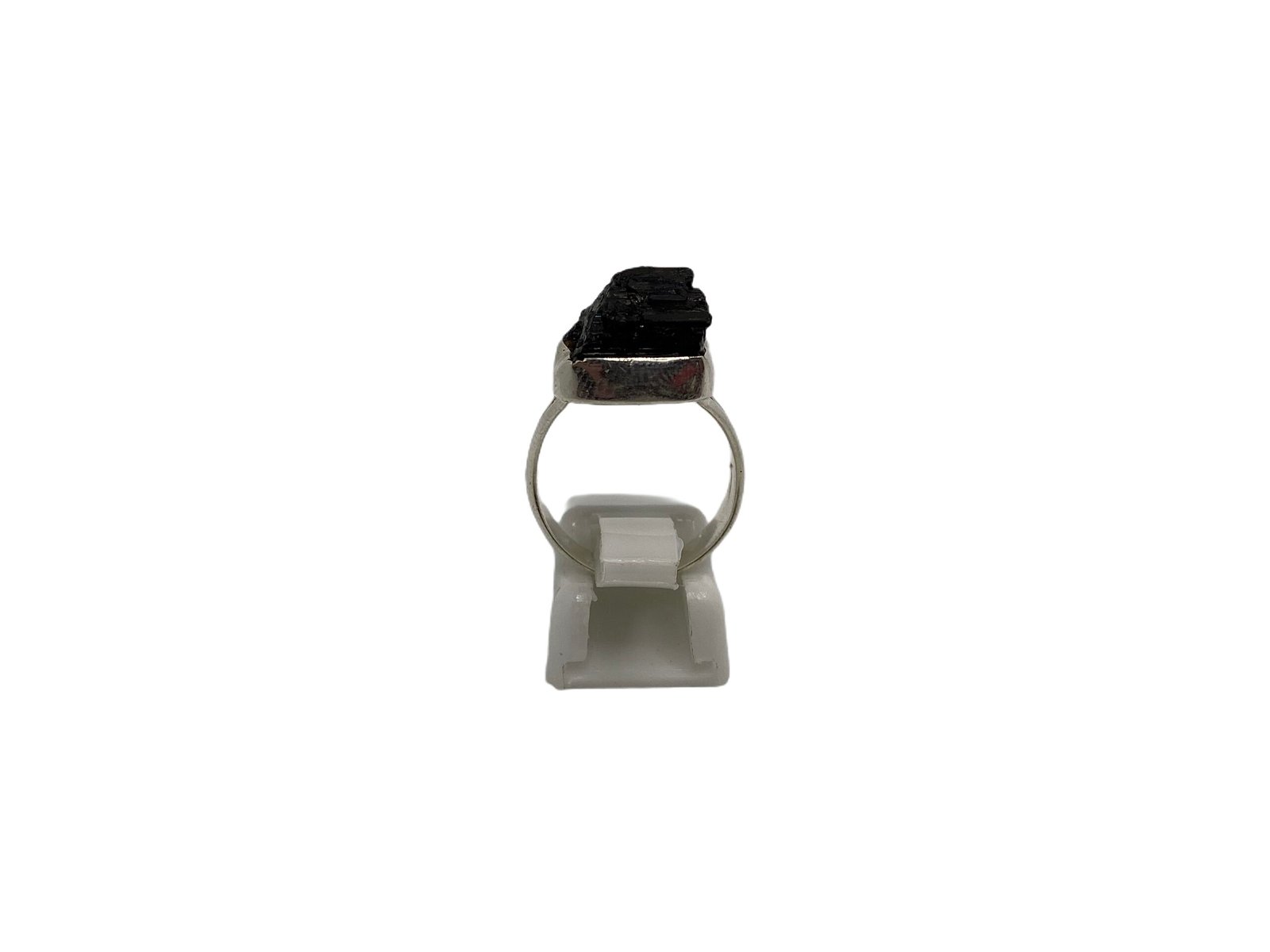 Este anillo de plata de ley 925 con turmalina negra destaca por su diseño alargado y elegante. Su tono oscuro y su estructura refinada lo convierten en una joya con carácter.