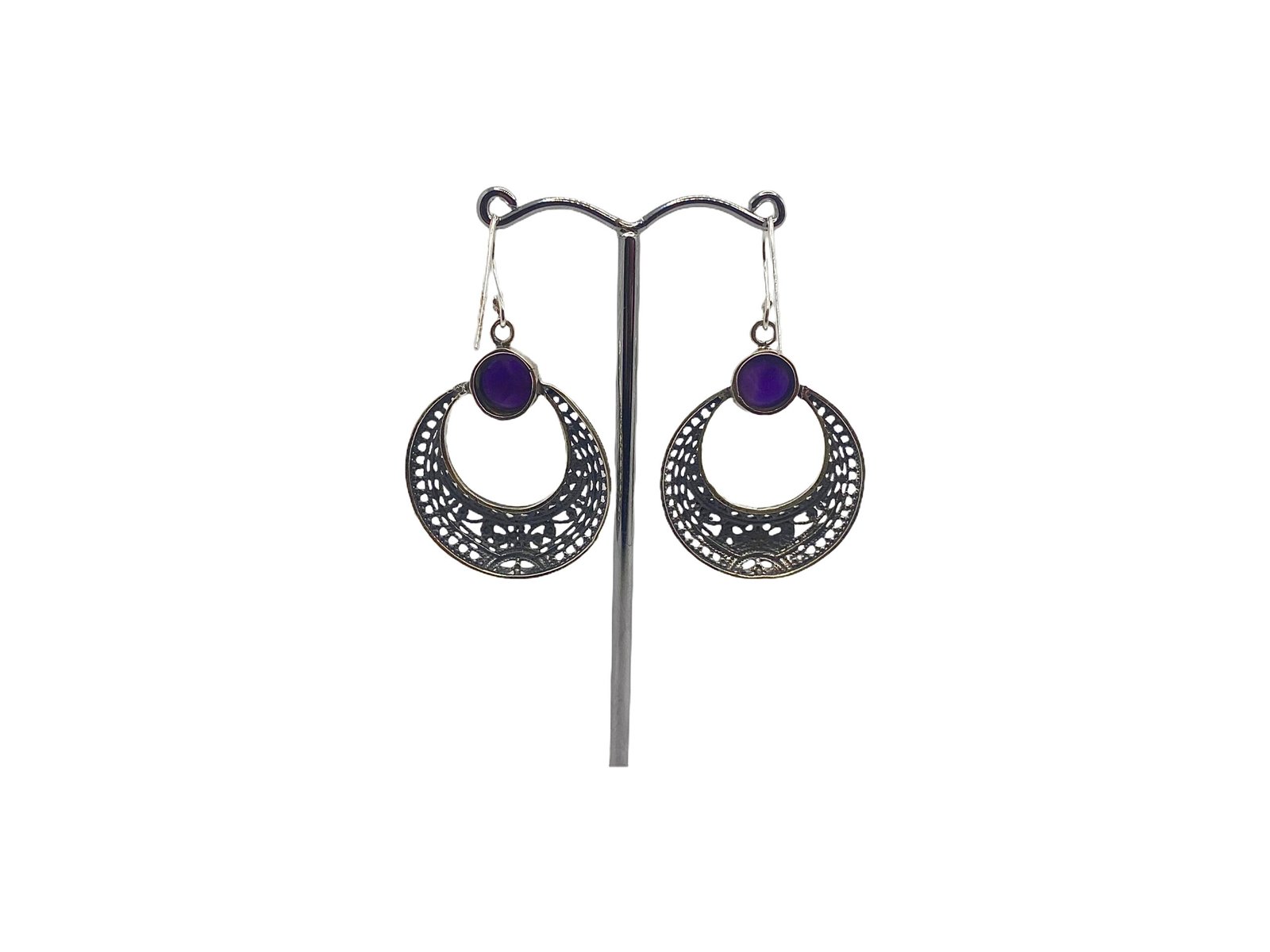 Conocida por sus propiedades de equilibrio y serenidad, la amatista convierte estos pendientes en más que un accesorio. Su diseño llamativo y cómodo los hace ideales para realzar cualquier look con sofisticación.