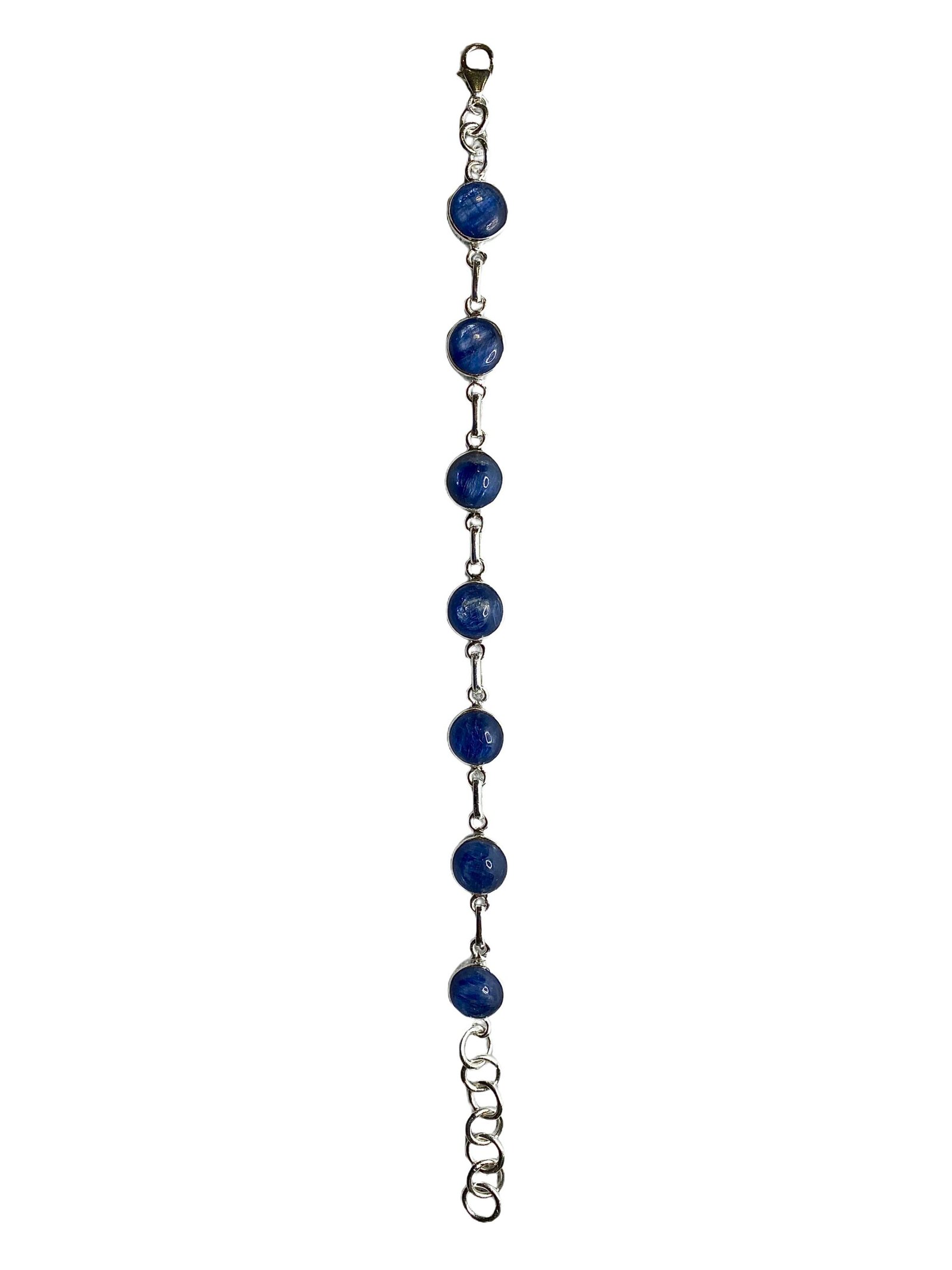 Esta pulsera de plata de ley 925 con cianita azul es una pieza que combina belleza natural y un diseño sofisticado. Su delicado acabado realza el brillo único de la cianita, creando un accesorio versátil que complementa cualquier estilo con un toque de distinción.