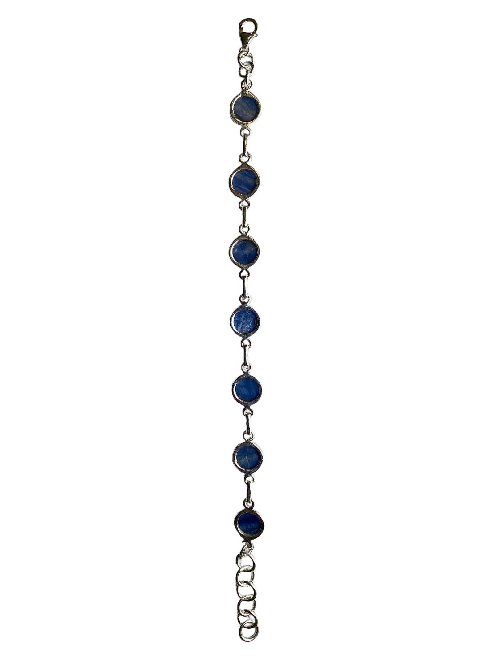 Esta pulsera de plata de ley 925 con cianita azul es una joya elegante y atemporal. Su diseño refinado y su intenso color azul la convierten en un accesorio imprescindible.